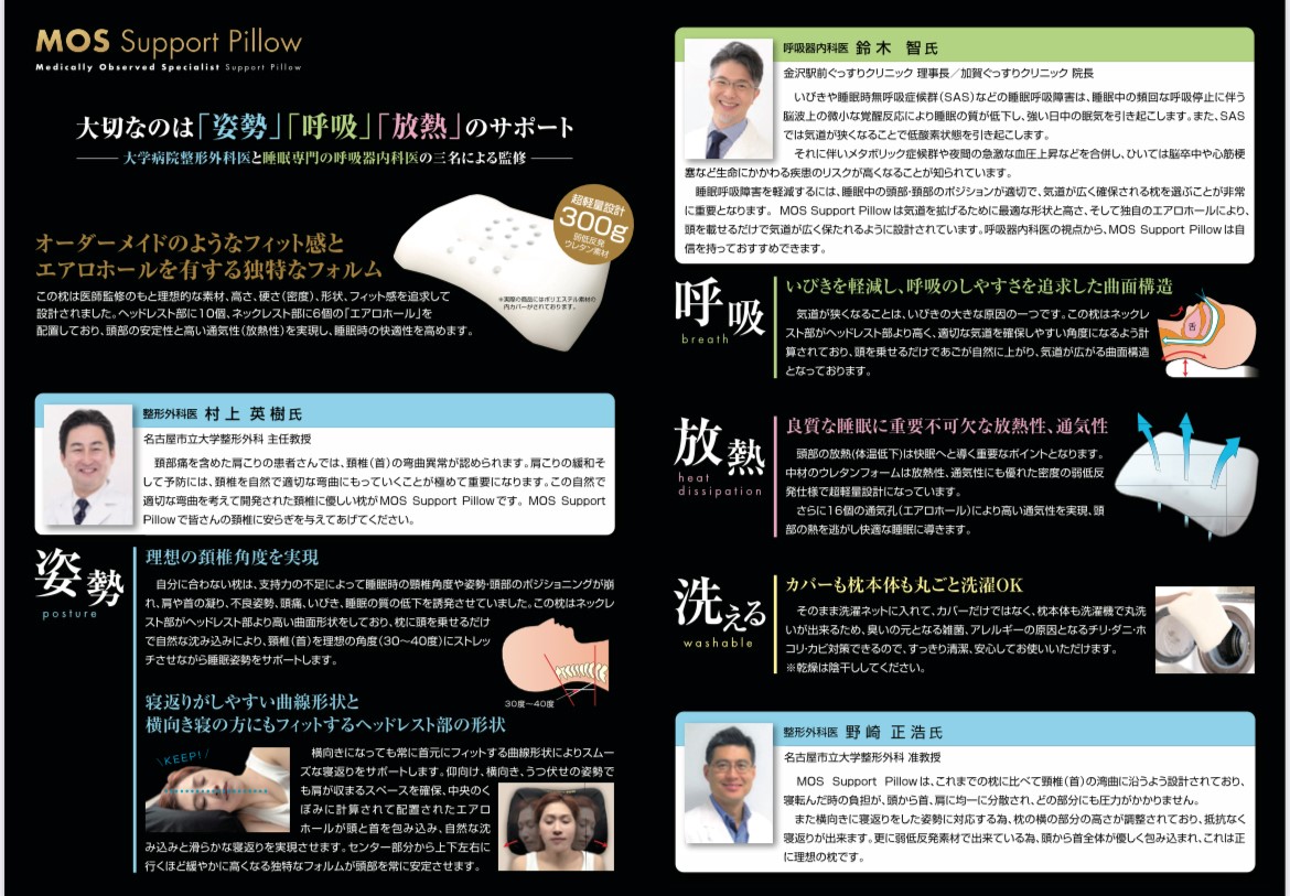 MOS Support Pillow で皆様に快適をお届けします。